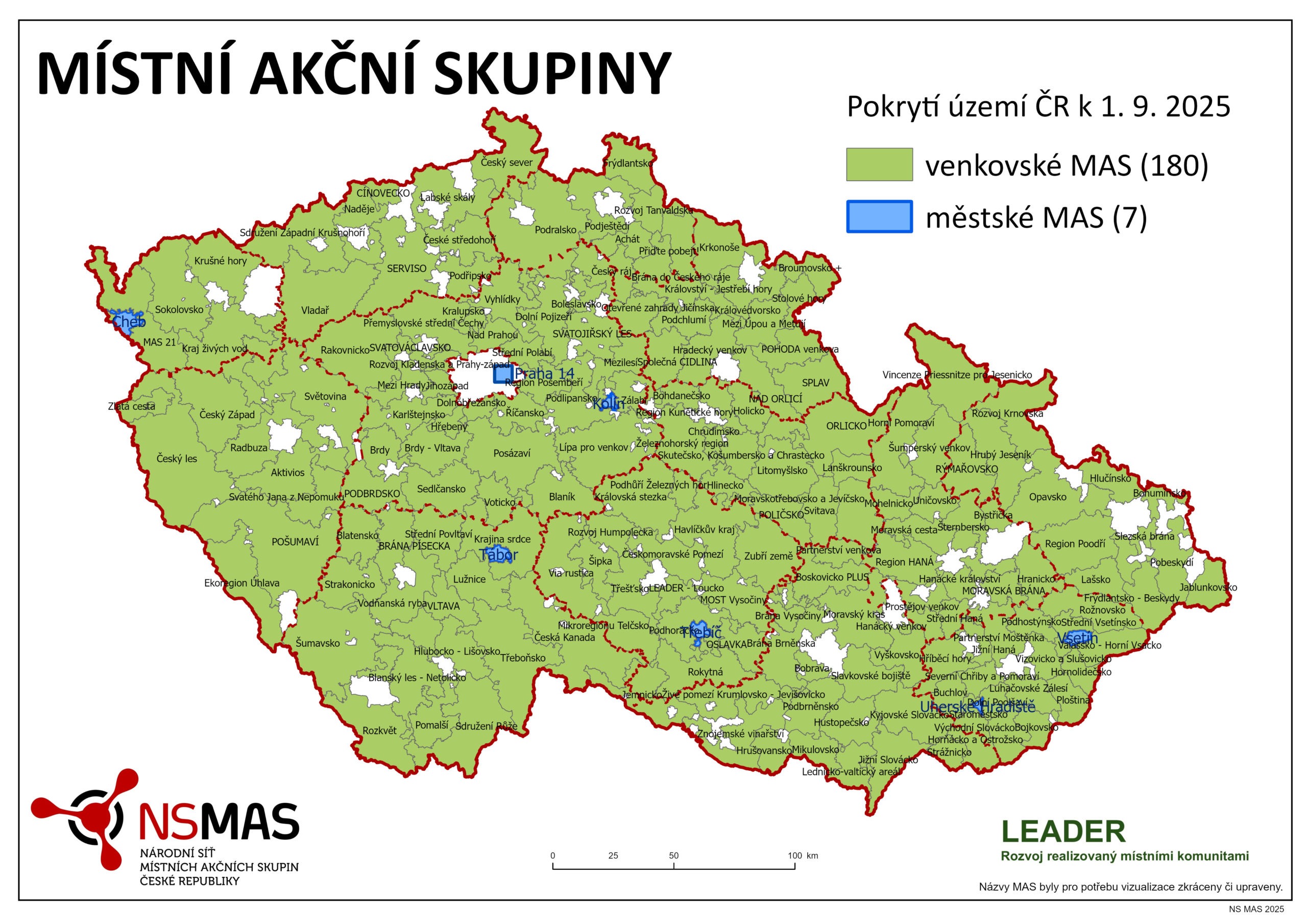 V Česku existuje 180 venkovských MAS a nově i 7 městských. Všechny dohromady pokrývají 93,16 % území a 6,7 milionu obyvatel ČR. Na území jedné MAS musí bydlet 10 000 až 100 000 lidí, největší je co do počtu obyvatel MAS Přemyslovské střední Čechy (téměř 99 tis. obyvatel) a nejmenší MAS Brána Písecka (necelých 12 tis. obyvatel). Největší rozlohou je MAS Pošumaví (pokrývá téměř 150 000 ha a 100 obcí), nejmenší území pokrývá MAS Staroměstsko a nejméně obcí má MAS Svatováclavsko.